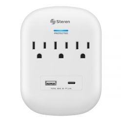 Multicontacto de pared con supresor de picos (170 J), 3 salidas polarizadas y centro de carga USB / USB C